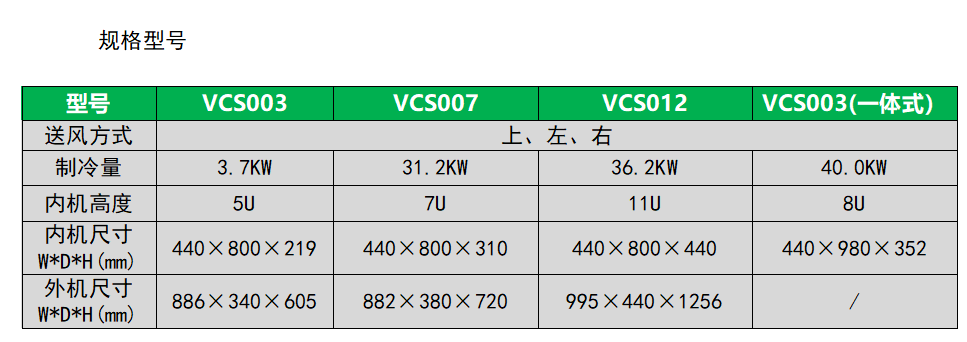 英威腾威捷VCS系列机架精密空调,专为机柜级数据中心提供制冷,维持柜内数据中心温度/湿度在合理范围,以保障服务器,电源等设备的安全运行。VCS系列变频机架精密空调冷量覆盖全面,单机制冷量从0.8kW-12.5kW,主要应用于单柜,多柜的微模块数据中心,贴近热源,制冷更加高效。