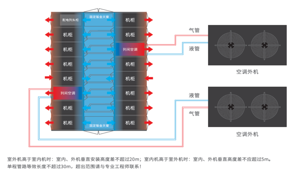 ●采用列间空调制冷,封闭制冷空间实现就近精确制冷,极大的升了制冷效率,与传统机房比较可节能35%以上。
